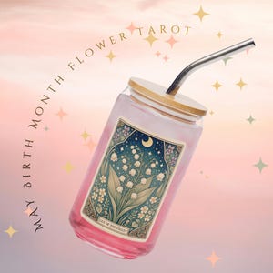 ✧Sip Your Magic: Birth Month Flower Tarot Glass Can Tumbler˖⋆。˖⋆