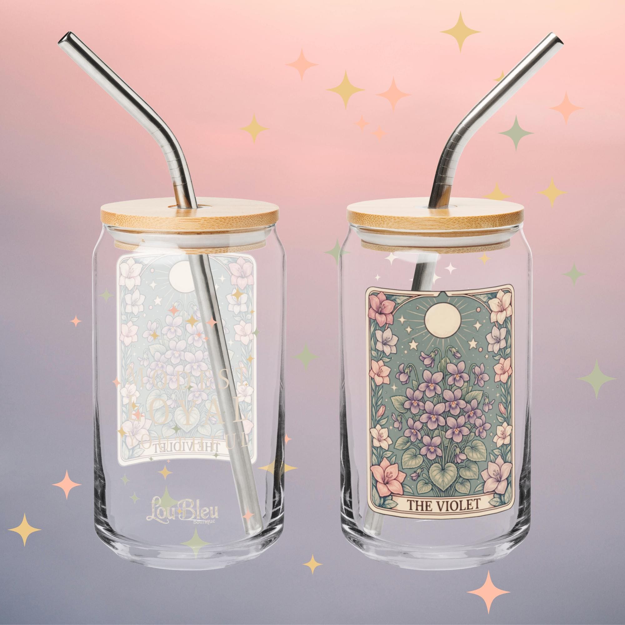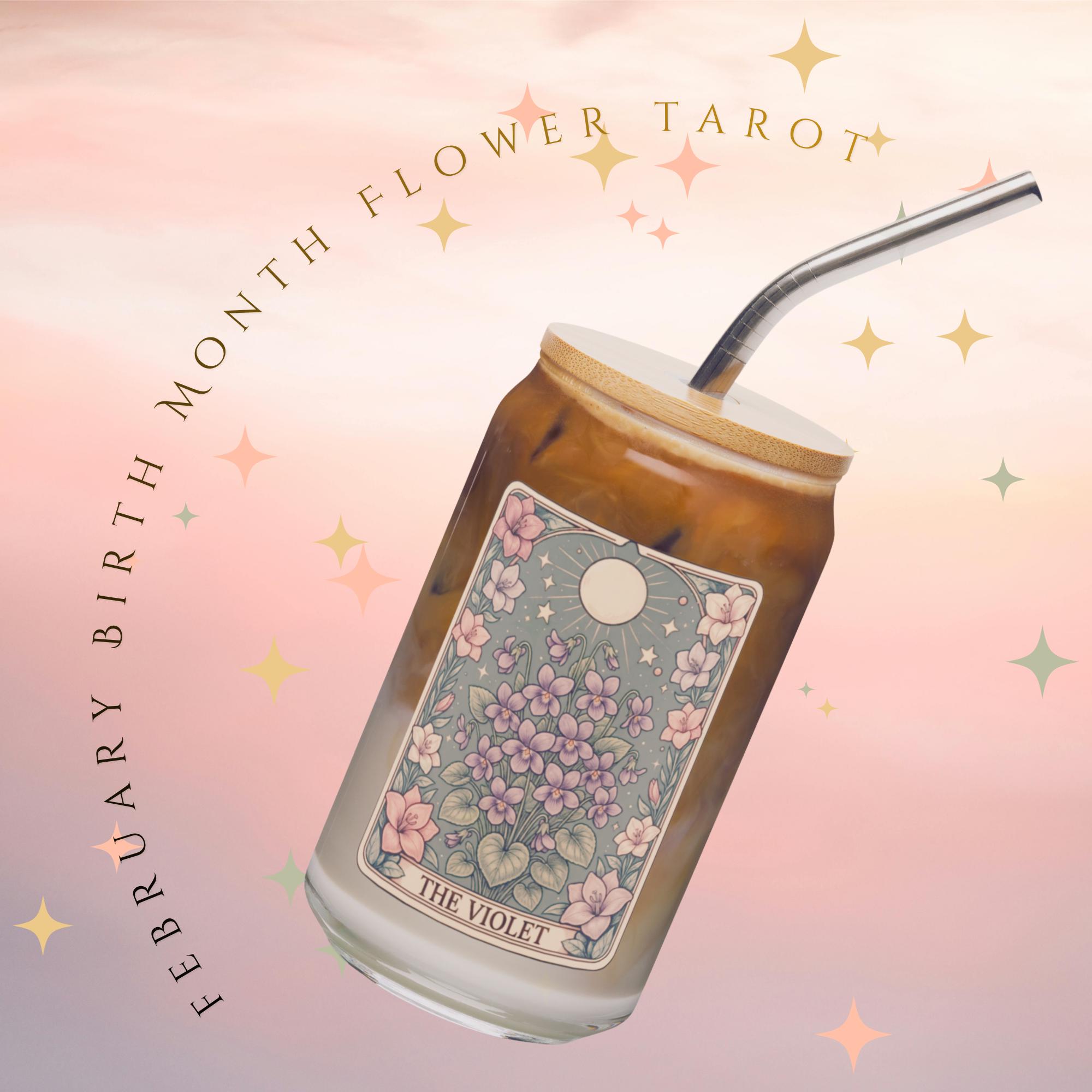 ✧Sip Your Magic: Birth Month Flower Tarot Glass Can Tumbler˖⋆。˖⋆