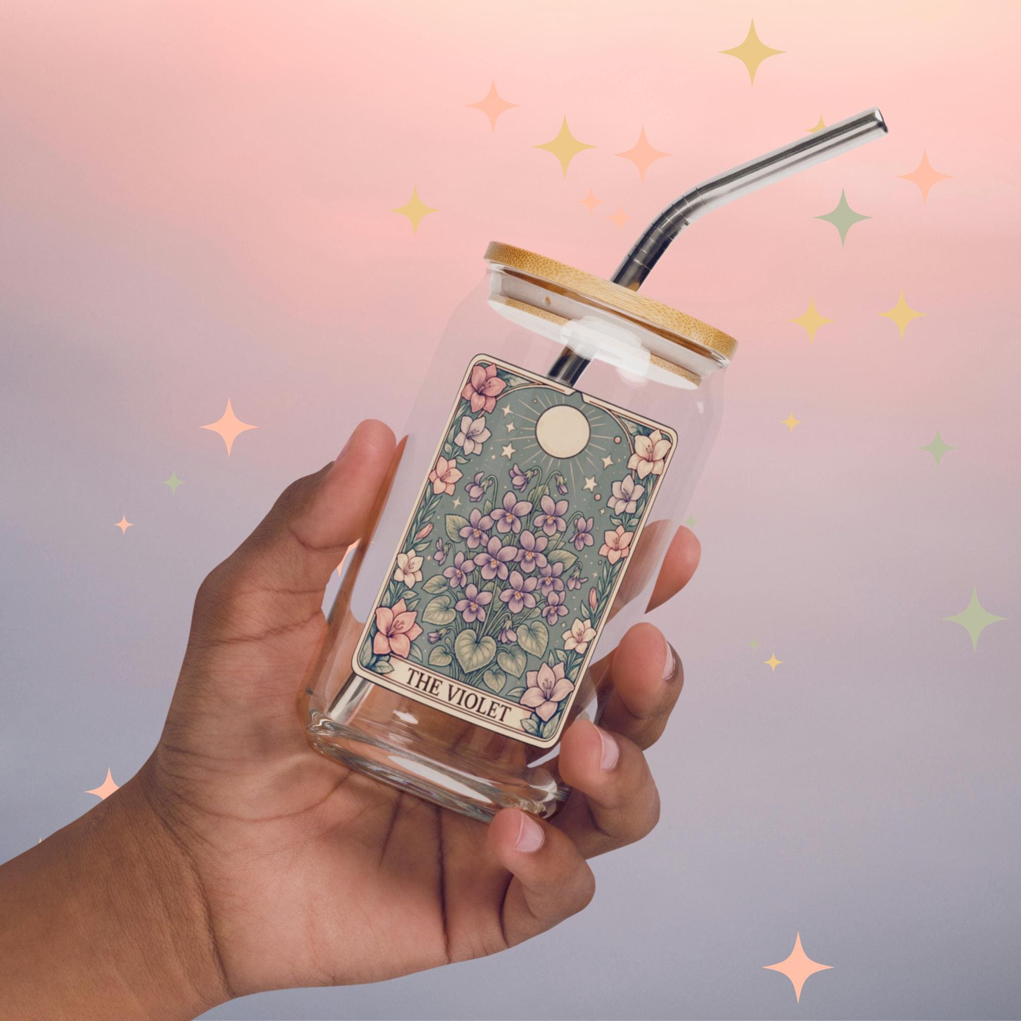 Transform your daily hydration (or caffeination) into a intentional ritual. Whether you’re stirring up a morning matcha, a moon-charged iced coffee, or a floral sun tea, these 16oz 'glass can' tumblers bring a touch of the ethereal to your desk or nightstand. Inspired by Birth Month Flowers and the mystery of the Tarot, each glass features a unique Vintage Botanical "Tarot Card" on the front and its soulful attributes on the back.